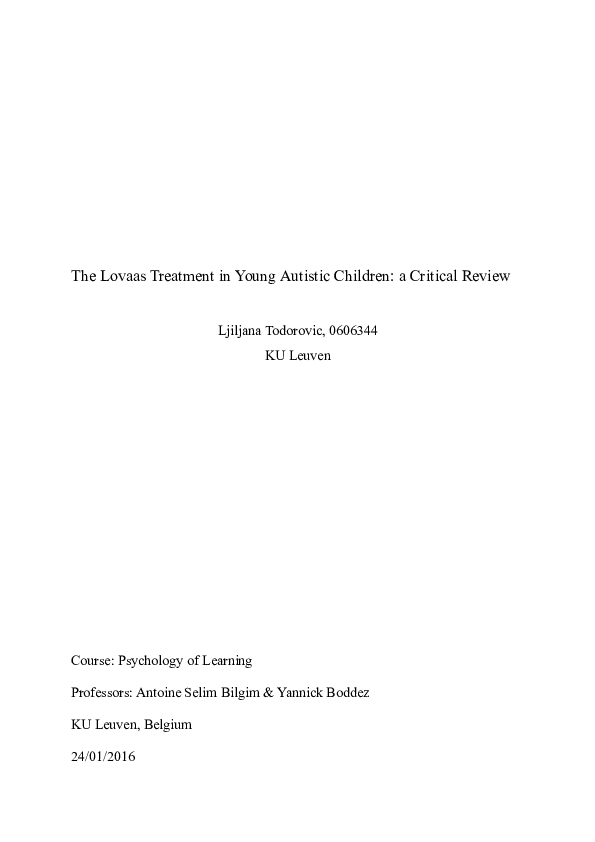 Doc The Lovaas Treatment In Young Autistic Children A Critical Review Ljiljana Todorovic Academia Edu